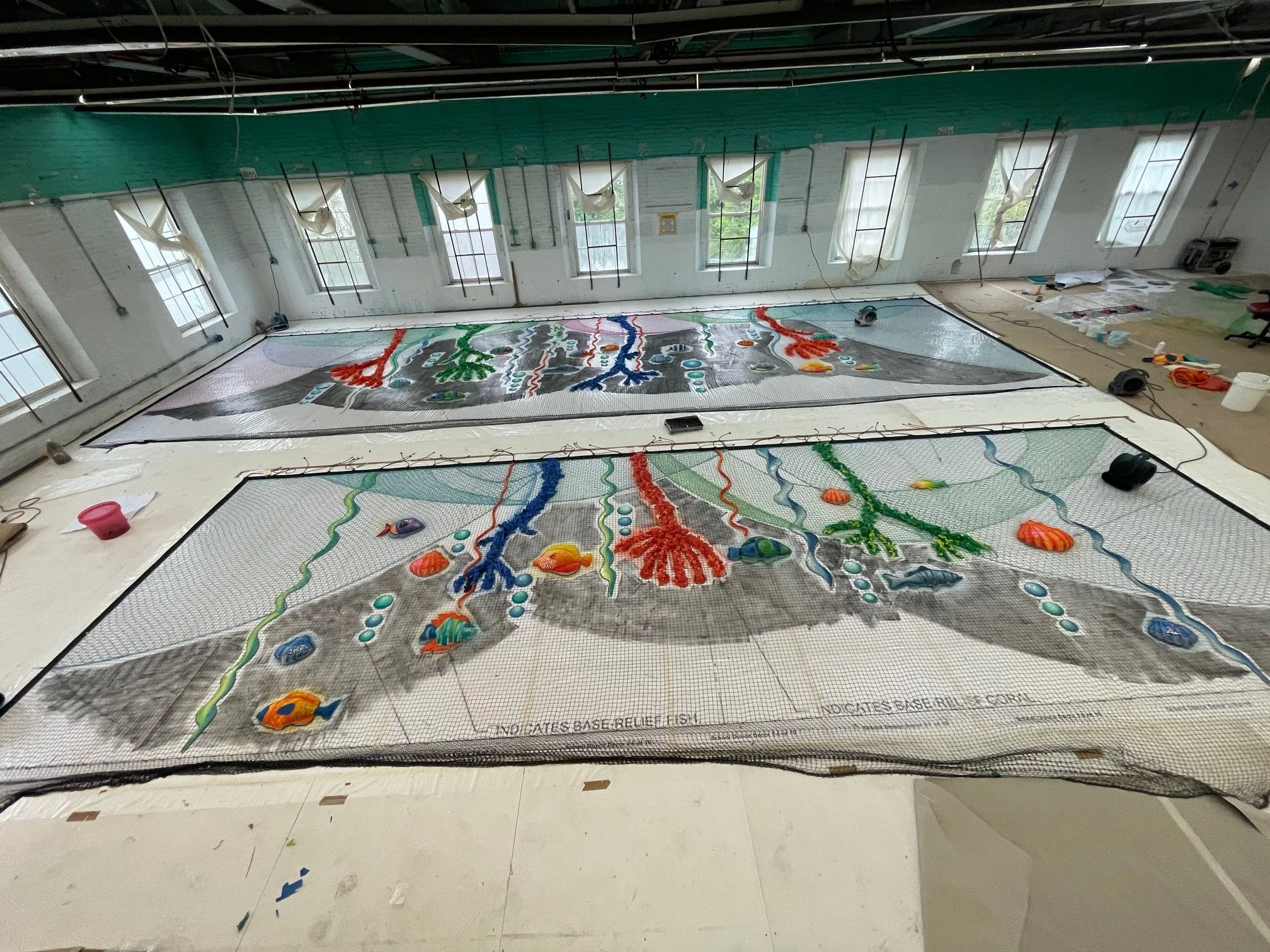 Jacob Jurain working at the Park Avenue Armory doing an installation for the Michael Rosenfeld Gallery in 2021.